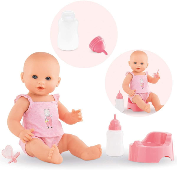 Questa bambina corolle beve dal suo biberon che può essere riempito "sul serio".