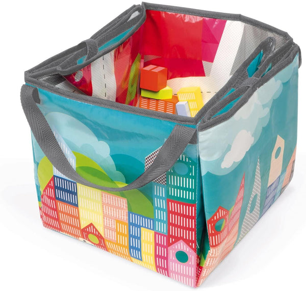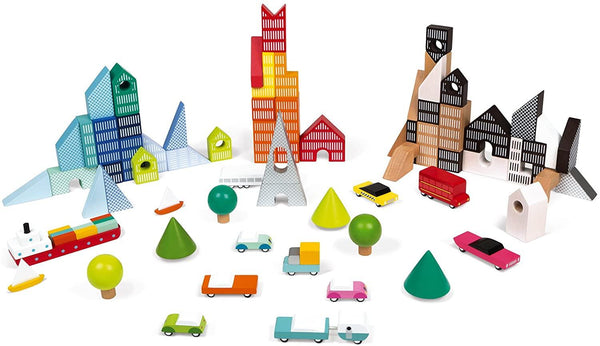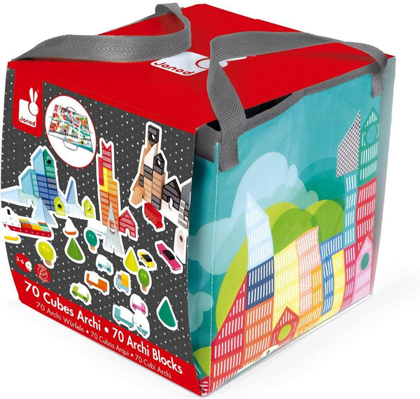 Architetti in erba, pronti a dare vita alla città più bella... la vostra! Con questo gioco costruire un piccolo universo dove corrono auto e treni è molto semplice! I pezzi del gioco sono realizzati in legno massello, dipinti con colori a base d’acqua e permettono molteplici possibilità per aspiranti designer: città, grattacieli, paesaggi... Pratica, la scatola funge anche da contenitore per conservare i cubi e si può trasportare facilmente grazie alla maniglia. Questo gioco è perfetto per sviluppare la coordinazione mano/occhio e la costruzione visuo-spaziale.