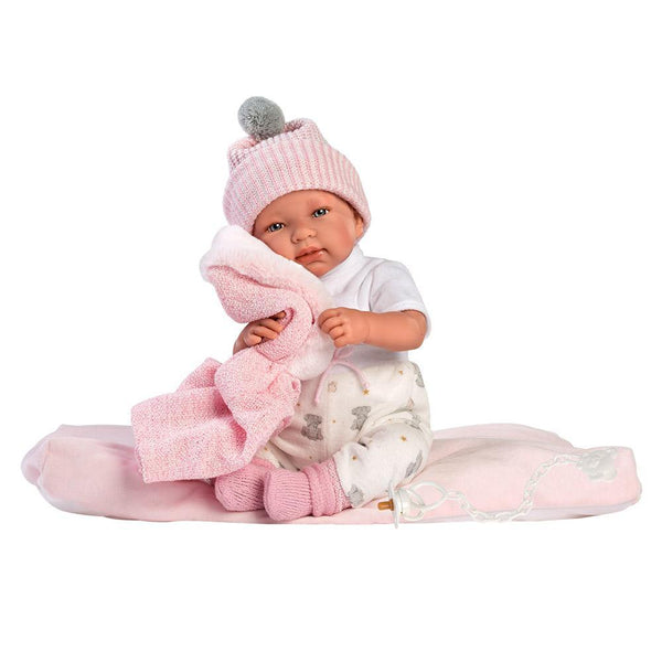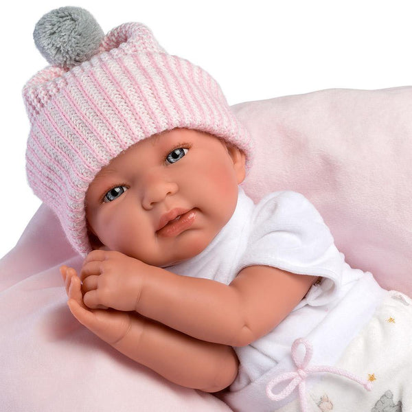 Metti a dormire la neonata Tina sul suo cuscino e vedrai che dormirà come un angioletto. Mettile il cappuccio se ha freddo.