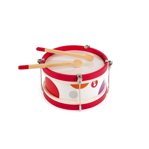 Musica maestro, con questo bellissimo tamburo di legno! I bambini dai 2 anni saranno in grado di sperimentare con i suoni e avvicinarsi alla musica, acquisendo fiducia in se stessi. Questo tamburo fa parte della nostra gamma Confetti: una gamma di giocattoli che imitano strumenti musicali con motivi Pop N'Rock! La pelle di questo tamburo è dotata di uno strato di feltro per ottimizzare la resistenza, la tensione della pelle può essere regolata con l'aiuto di una chiave. Sono incluse due bacchette. È un vero piacere per il tuo bambino giocare a fare la star della musica con il suo strumento!