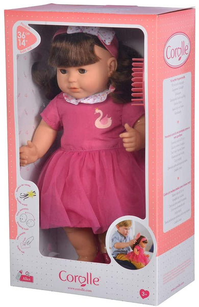 Splendida bambola di 36 cm con corpo morbido e capelli lunghi da spazzolare.