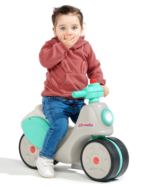 Con questo riflettore in stile retrò, Falk ripercorre la sua storia aggiornando una delle sue ammiraglie degli anni '70. La nuova versione si inserisce perfettamente nell'era attuale grazie ai suoi colori e alla lavorazione alla moda. Dotato di grandi ruote che forniscono al bambino la stabilità necessaria per lo sviluppo, pratica anche l'equilibrio e le capacità motorie. Grazie al rivestimento elastomerico, sono più resistenti ai graffi e ad altri danni. La corsa è come su un vero scooter grazie al volante piccolo e dotato di clacson, che arricchisce ulteriormente il gioco del bambino.